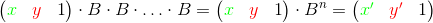 To execute the loop, we should compute n — the number of iterations in the loop, and B matrix — a consequent multiplication of matrices that correspond to iterations from the loop body. Then we should multiply the initial vector by B matrix n times. Another way is to raise B matrix to the power of n and then multiply the vector with variables by the obtained result: