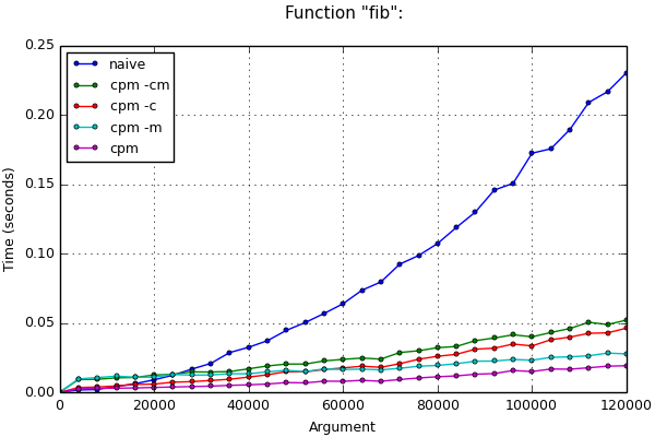 The chart below demonstrates the runtime to calculate Fibonacci numbers when some or other options are disabled: